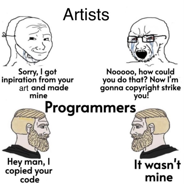 반면 개발자는 뭔가 악의적이지 않다면 그런 경우가 잘 없다. 사실 그 두명 다 자기가 짠 코드가 아니라 구글링으로 긁어온 것이기 때문에 별 신경도 쓰지 않는다. 설령 자기가 짠 코드라도 오픈해놓는 경우가 많다. (개발자 특성이 그런 것일 수도 있겠다)